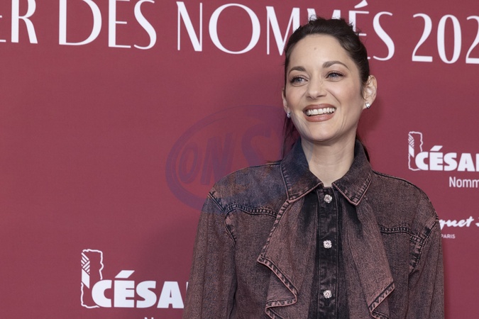Marion Cotillard au Photocall des participants au dîner des nommés des César 2024 au Fouquet's Paris le 5 février 2024. © Olivier Borde / Bestimage Photocall of participants at the César 2024 nominees' dinner at Fouquet's Paris on 5 February 2024
