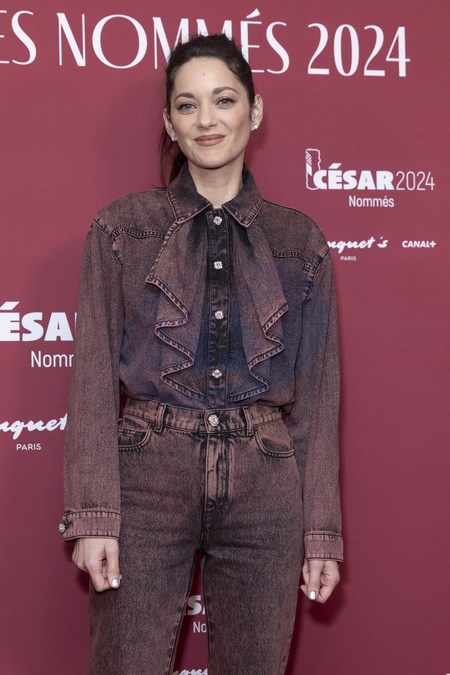Marion Cotillard au Photocall des participants au dîner des nommés des César 2024 au Fouquet's Paris le 5 février 2024. © Olivier Borde / Bestimage Photocall of participants at the César 2024 nominees' dinner at Fouquet's Paris on 5 February 2024