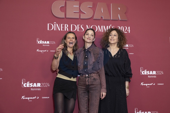 Laetitia Gonzalez, Marion Cotillard et Mona Achache au Photocall des participants au dîner des nommés des César 2024 au Fouquet's Paris le 5 février 2024. © Olivier Borde / Bestimage Photocall of participants at the César 2024 nominees' dinner at Fouquet's Paris on 5 February 2024