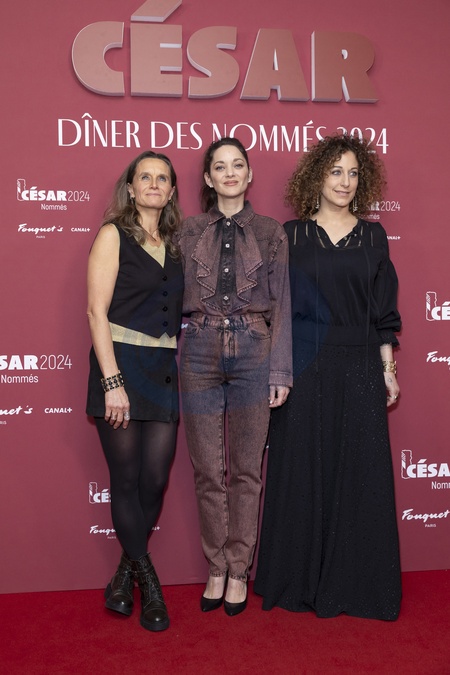 Laetitia Gonzalez, Marion Cotillard et Mona Achache au Photocall des participants au dîner des nommés des César 2024 au Fouquet's Paris le 5 février 2024. © Olivier Borde / Bestimage Photocall of participants at the César 2024 nominees' dinner at Fouquet's Paris on 5 February 2024