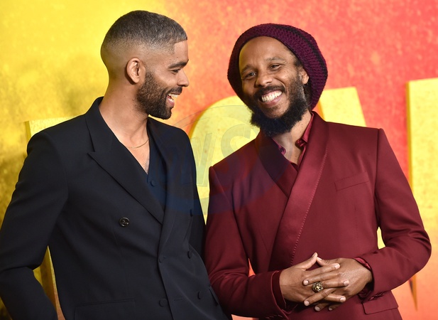 Kingsley Ben-Adir and Ziggy Marley arriving to the Los Angeles premiere of "Bob Marley: One Love” held at the Regency Village Theater on February 6, 2024 in Westwood, Ca.© Lisa OConnor/AFF-USA.com
