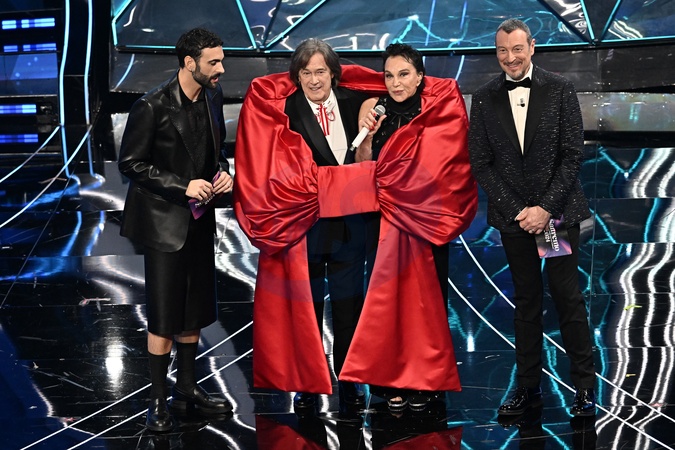 i Ricchi e Poveri con Marco Mengoni e Amadeus during Sanremo Italian Song Festival. Sanremo, Italy, 06 February 2024., Credit:Maria Laura Antonelli / Avalon