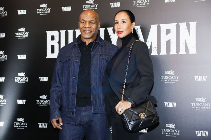 Mike Tyson and wife Lakiha Spicer during press conference movie Bunny-Man. Turin, Italy 07 February 2024, Credit:Giulio Lapone Sync / Avalon
