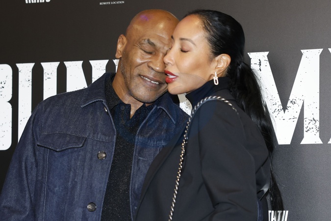 Mike Tyson and wife Lakiha Spicer during press conference movie Bunny-Man. Turin, Italy 07 February 2024, Credit:Giulio Lapone Sync / Avalon
