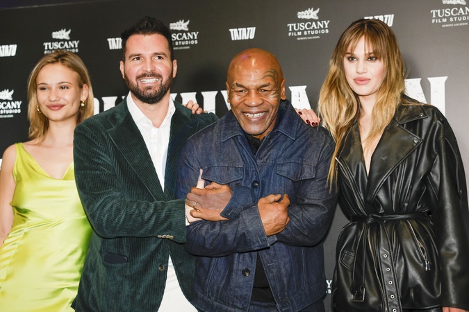 Miluo Fokkels, Luca Iervolino producer, Mike Tyson, Meredith Mickleson, during press conference movie Bunny-Man. Turin, Italy 07 February 2024, Credit:Giulio Lapone Sync / Avalon
