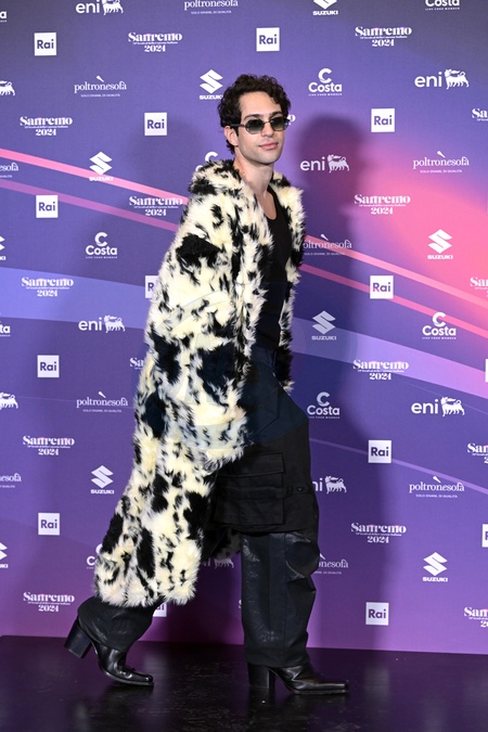Mahmood during a photocall on the occasion of the 74th Sanremo Italian Song Festival, in Sanremo, Italy, 07 February 2024.