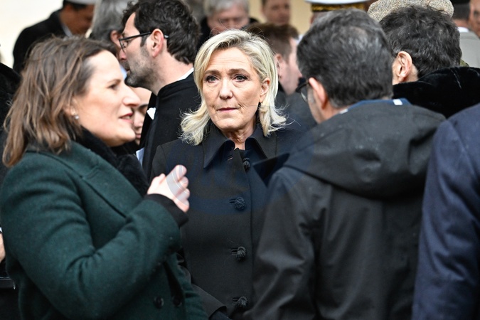 Marine Le Pen, presidente du groupe RN - Cérémonie d'hommage national aux victimes françaises des attaques terroristes du 7 octobre en Israël dans la cour d'honneur de l'Hôtel national des Invalides, à Paris, France, le 7 février 2024. Quatre mois jour pour jour après les attentats terroristes qui ont frappé Israël et le peuple israélien et qui ont causé la mort de 42 de nos concitoyens. A ce jour, trois de nos compatriotes demeurent toujours disparus et présumés otages, et la France n'a de cesse d'œuvrer avec ses partenaires pour leur libération. ©Eric Tschaen/Pool/Bestimage Ceremony of national homage to the French victims of the terrorist attacks in Israel on 7 October in the Cour d'Honneur of the Hôtel National des Invalides on 7 February 2024. Four months to the day after the terrorist attacks that struck Israel and the Israeli people, killing 42 of our fellow citizens. To this day, three of our compatriots remain missing and presumed hostages, and France continues to work with its partners for their release.