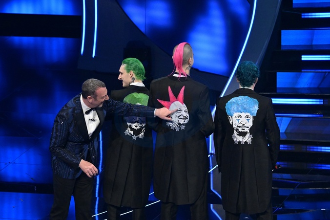 La Sad, Amadeus during the day 2 of 74th Sanremo Music Festival 2024, Italy - 07 Feb 2024, Credit:Maria Laura Antonelli / Avalon