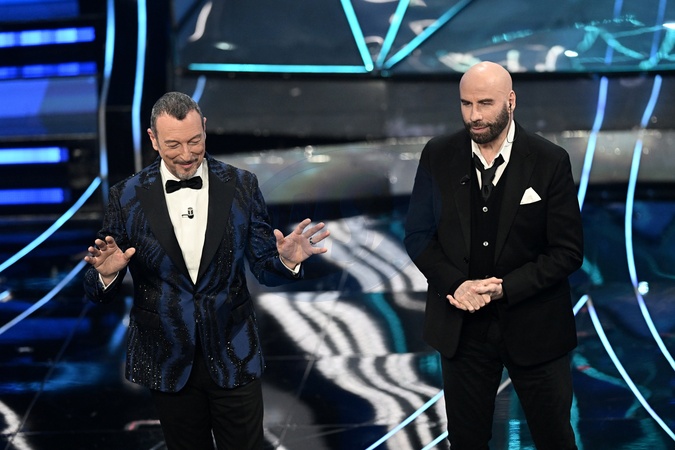 Amadeus, John Travolta during the day 2 of 74th Sanremo Music Festival 2024, Italy - 07 Feb 2024, Credit:Maria Laura Antonelli / Avalon