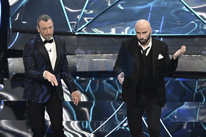 John Travolta, Amadeus during the day 2 of 74th Sanremo Music Festival 2024, Italy - 07 Feb 2024, Credit:Maria Laura Antonelli / Avalon
