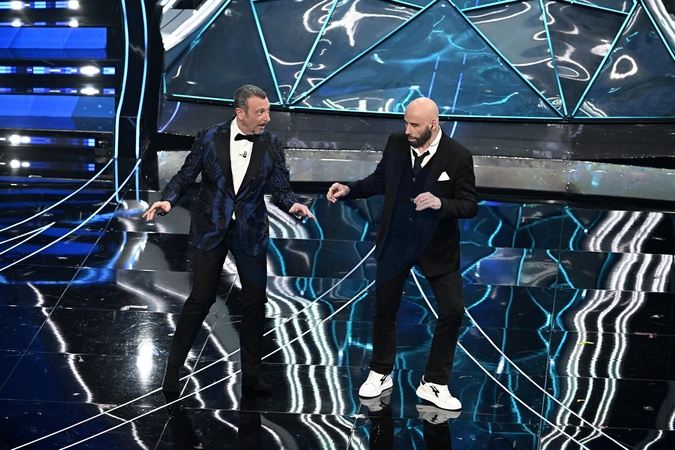 John Travolta, Amadeus during the day 2 of 74th Sanremo Music Festival 2024, Italy - 07 Feb 2024, Credit:Maria Laura Antonelli / Avalon
