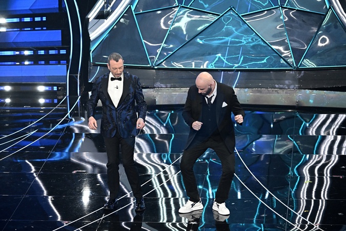 Amadeus, John Travolta during the day 2 of 74th Sanremo Music Festival 2024, Italy - 07 Feb 2024, Credit:Maria Laura Antonelli / Avalon