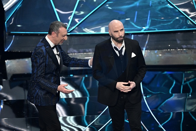 Amadeus, John Travolta during the day 2 of 74th Sanremo Music Festival 2024, Italy - 07 Feb 2024, Credit:Maria Laura Antonelli / Avalon