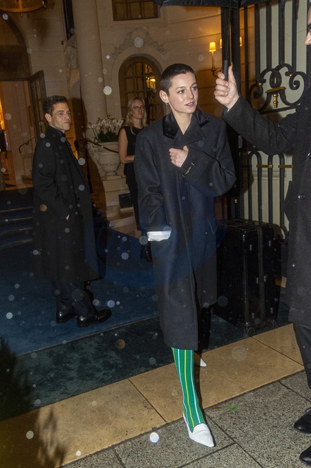 Rami Malek et sa compagne Emma Corrin sortent de l'hôtel Ritz Paris