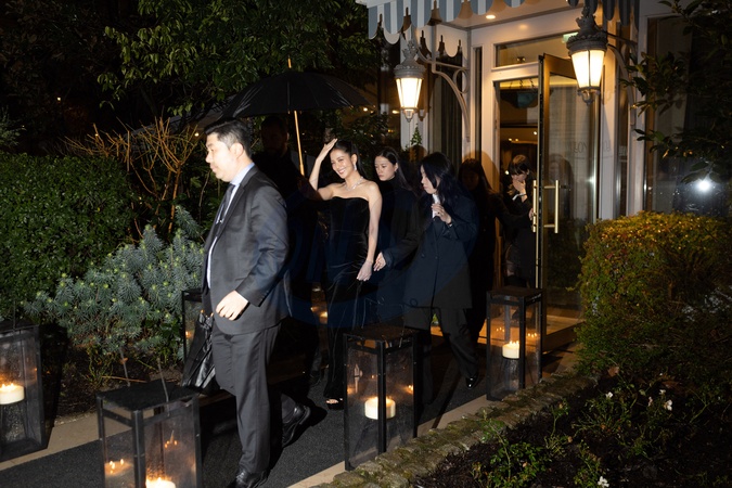 Jisoo (Blackpink) à la sortie du dîner Cartier, pour marquer le 100ème anniversaire de sa conception Trinity, chez Alléno Paris - Yannick Alléno au Pavillon Ledoyen à Paris, France, le 7 février 2024. Guests at the Cartier dinner at Alléno Paris - Yannick Alléno at the Pavillon Ledoyen in Paris on 7 February 2024. Cartier marks the 100th anniversary of its Trinity design with new editions that put a striking twist on the classic creation.