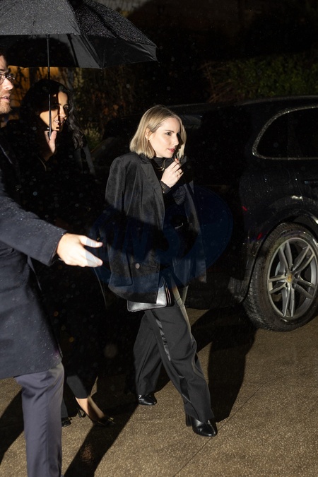 à la sortie du dîner Cartier, pour marquer le 100ème anniversaire de sa conception Trinity, chez Alléno Paris - Yannick Alléno au Pavillon Ledoyen à Paris, France, le 7 février 2024. Guests at the Cartier dinner at Alléno Paris - Yannick Alléno at the Pavillon Ledoyen in Paris on 7 February 2024. Cartier marks the 100th anniversary of its Trinity design with new editions that put a striking twist on the classic creation.