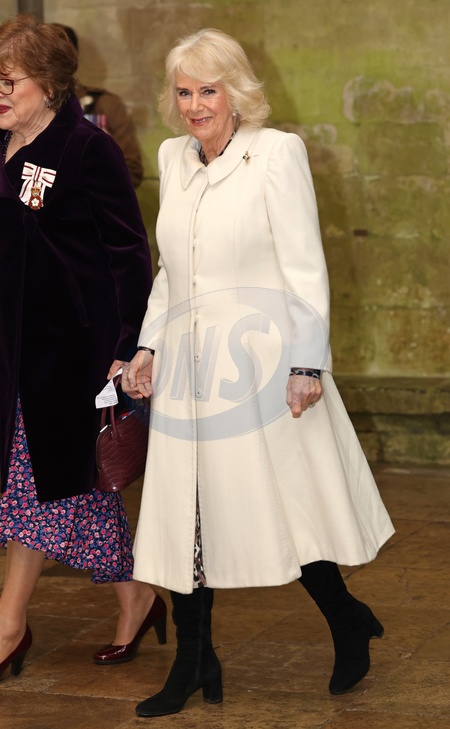 SALISBURY, ENGLAND - FEBRUARY 08: Queen Camilla arrives at a musical evening at Salisbury Cathedral on February 08, 2024 in Salisbury, England. The evening is being held to celebrate the work of local charities including The Wiltshire Bobby Van Trust, The Wiltshire Air Ambulance, Community First ‚Äě Youth Action Wiltshire and the regimental charities of The Grenadier Guards and The Rifles., Credit:Chris Jackson / Avalon