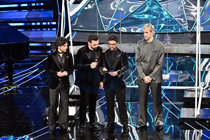 Il Volo, Mr. Rain during Sanremo Italian Song Festival. Sanremo, Italy, 08 February 2024., Credit:Maria Laura Antonelli / Avalon