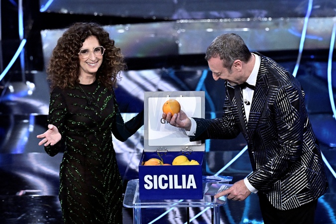 Teresa Mannino, Amadeus during the day 3 of 74th Sanremo Music Festival 2024, Italy - 08 Feb 2024, Credit:Maria Laura Antonelli / Avalon