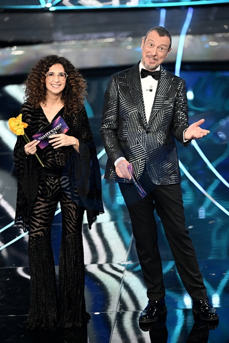 Teresa Mannino, Amadeus during the day 3 of 74th Sanremo Music Festival 2024, Italy - 08 Feb 2024, Credit:Maria Laura Antonelli / Avalon