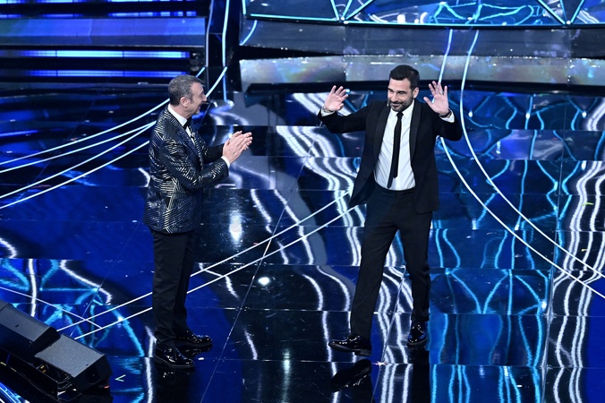 Amadeus, Edoardo Leo during the day 3 of 74th Sanremo Music Festival 2024, Italy - 08 Feb 2024, Credit:Maria Laura Antonelli / Avalon