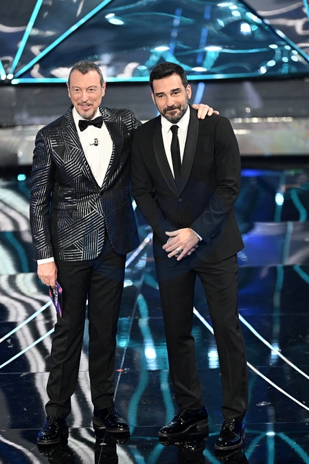 Amadeus, Edoardo Leo during the day 3 of 74th Sanremo Music Festival 2024, Italy - 08 Feb 2024, Credit:Maria Laura Antonelli / Avalon