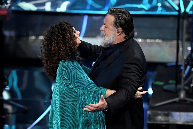Teresa Mannino, Russel Crowe during the day 3 of 74th Sanremo Music Festival 2024, Italy - 08 Feb 2024, Credit:Maria Laura Antonelli / Avalon