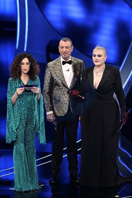 Teresa Mannino, Amadeus, Bigmama during the day 3 of 74th Sanremo Music Festival 2024, Italy - 08 Feb 2024, Credit:Maria Laura Antonelli / Avalon