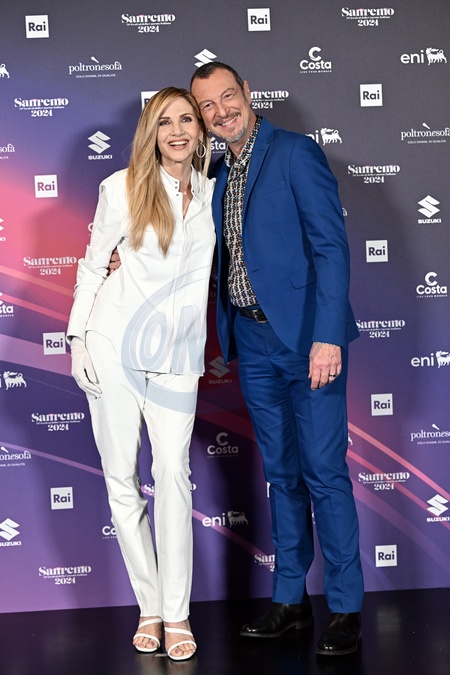 Lorella Cuccarini and Amadeus, the hosts of the fourth day of the Sanremo Music Festival, Credit:Maria Laura Antonelli / Avalon