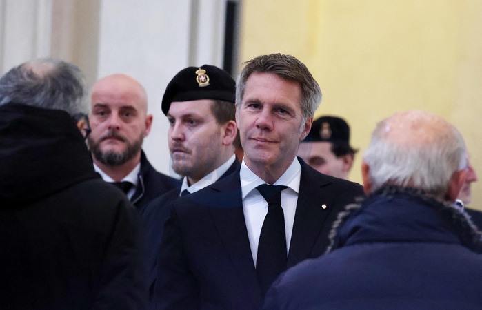 Le prince Emmanuel-Philibert de Savoie - Veillée funèbre du prince Victor-Emmanuel de Savoie, en l'Eglise de Sant'Uberto à Turin, en présence de sa veuve Marina Ricolfi-Doria, de son fils, le prince E-P. de Savoie avec sa femme la princesse Clotilde Courau et leurs filles les princesses Vittoria et Louisa, le 9 février 2024. Le fils du dernier roi d'Italie s'est éteint le 3 février 2024 à l'âge de 86 ans. © Dominique Jacovides/Bestimage Funeral wake of Prince Victor-Emmanuel of Savoy, in the Church of Sant'Uberto in Turin, in the presence of his widow Marina Ricolfi-Doria, his son, Prince E-P. of Savoy with his wife Princess Clotilde Courau and their daughters Princesses Vittoria and Louisa, February 9, 2024. The son of the last king of Italy died on February 3, 2024 at the age of 86.