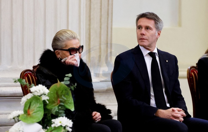 Marina Ricolfi-Doria et son fils, le prince Emmanuel-Philibert de Savoie - Veillée funèbre du prince Victor-Emmanuel de Savoie, en l'Eglise de Sant'Uberto à Turin, en présence de sa veuve Marina Ricolfi-Doria, de son fils, le prince E-P. de Savoie avec sa femme la princesse Clotilde Courau et leurs filles les princesses Vittoria et Louisa, le 9 février 2024. Le fils du dernier roi d'Italie s'est éteint le 3 février 2024 à l'âge de 86 ans. © Dominique Jacovides/Bestimage Funeral wake of Prince Victor-Emmanuel of Savoy, in the Church of Sant'Uberto in Turin, in the presence of his widow Marina Ricolfi-Doria, his son, Prince E-P. of Savoy with his wife Princess Clotilde Courau and their daughters Princesses Vittoria and Louisa, February 9, 2024. The son of the last king of Italy died on February 3, 2024 at the age of 86.