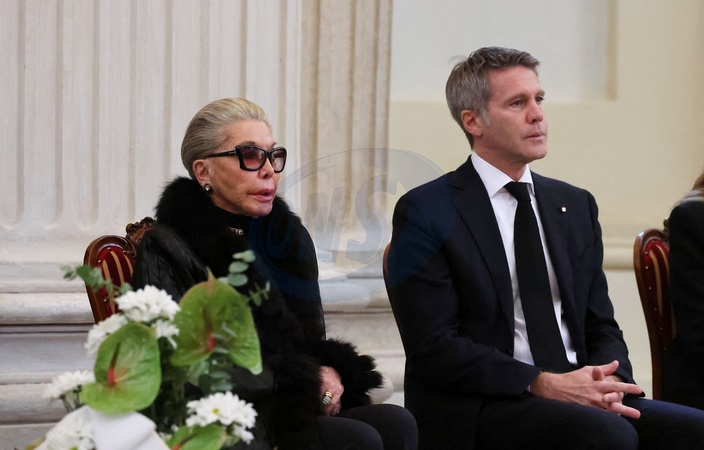 Marina Ricolfi-Doria et son fils, le prince Emmanuel-Philibert de Savoie - Veillée funèbre du prince Victor-Emmanuel de Savoie, en l'Eglise de Sant'Uberto à Turin, en présence de sa veuve Marina Ricolfi-Doria, de son fils, le prince E-P. de Savoie avec sa femme la princesse Clotilde Courau et leurs filles les princesses Vittoria et Louisa, le 9 février 2024. Le fils du dernier roi d'Italie s'est éteint le 3 février 2024 à l'âge de 86 ans. © Dominique Jacovides/Bestimage Funeral wake of Prince Victor-Emmanuel of Savoy, in the Church of Sant'Uberto in Turin, in the presence of his widow Marina Ricolfi-Doria, his son, Prince E-P. of Savoy with his wife Princess Clotilde Courau and their daughters Princesses Vittoria and Louisa, February 9, 2024. The son of the last king of Italy died on February 3, 2024 at the age of 86.