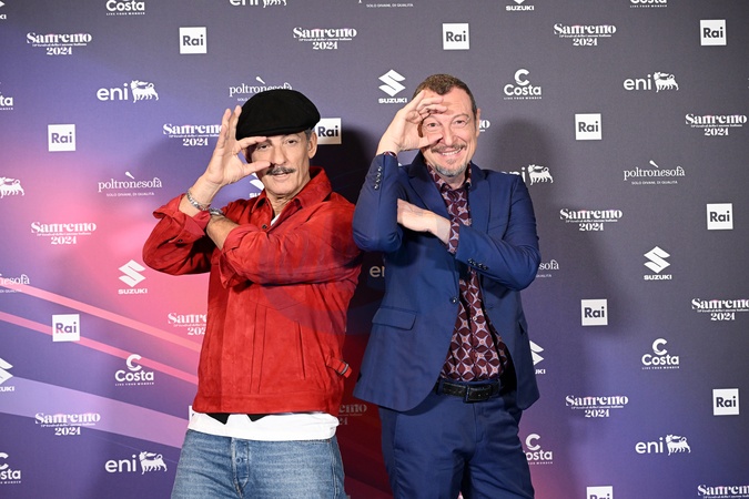 Amadeus and Rosario Fiorello during a photocall on the occasion of the 74th Sanremo Italian Song Festival, in Sanremo, Italy, 10 February 2024.
