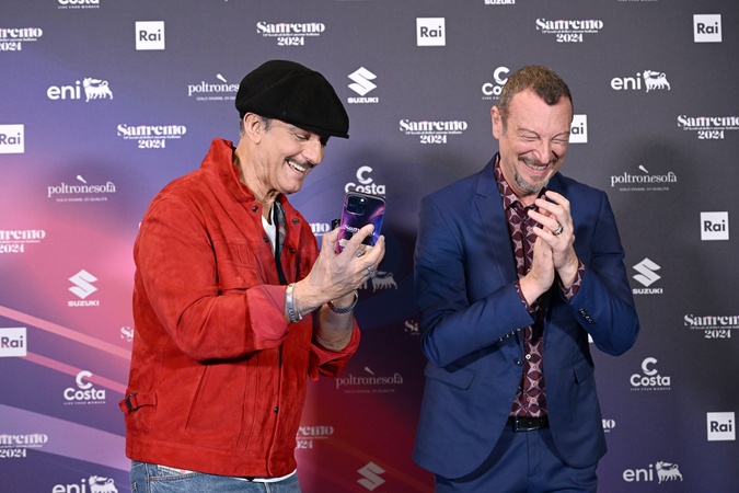 Amadeus and Rosario Fiorello during a photocall on the occasion of the 74th Sanremo Italian Song Festival, in Sanremo, Italy, 10 February 2024.