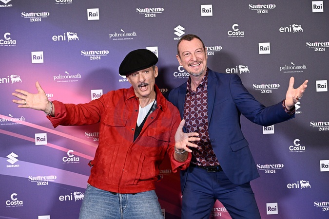 Amadeus, Rosario Fiorello during a photocall on the occasion of the 74th Sanremo Italian Song Festival, in Sanremo, Italy, 10 February 2024, Credit:Maria Laura Antonelli / Avalon