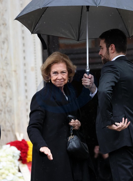 La reine Sofia d'Espagne - Les funérailles du prince Victor Emmanuel de Savoie, fils du dernier roi d'Italie, en la basilique de Superga, près de Turin, le 10 février 2004. © Dominique Jacovides/Bestimage The funeral of prince Victor Emmanuel of Savoy, son of the last king of Italy, in the basilica of Superga, near Turin, February 10, 2004.