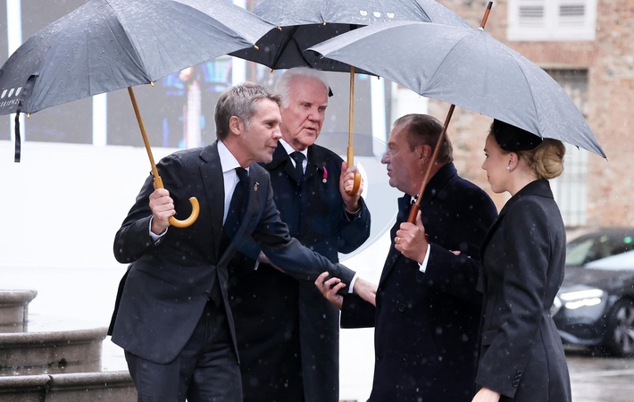 Wyjście z pogrzebu księcia Wiktora Emanuela Sabaudzkiego w bazylice Superga niedaleko Turynu