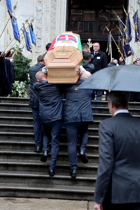 Wyjście z pogrzebu księcia Wiktora Emanuela Sabaudzkiego w bazylice Superga niedaleko Turynu