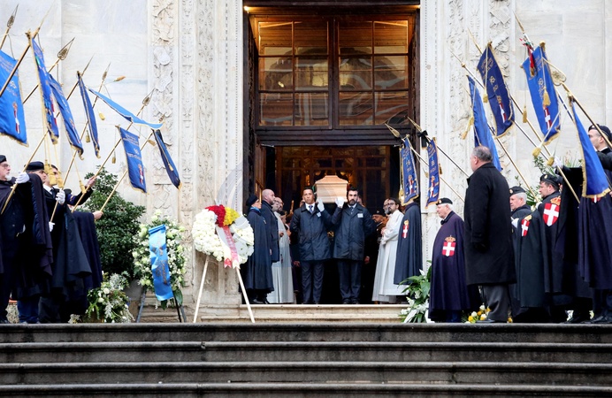 Illustration - Sorties des funérailles du prince Victor Emmanuel de Savoie en la basilique de Superga près de Turin le 10 février 2024. © Dominique Jacovides/Bestimage Exits from the funeral of Prince Victor Emmanuel of Savoy at the Basilica of Superga near Turin on February 10, 2024.
