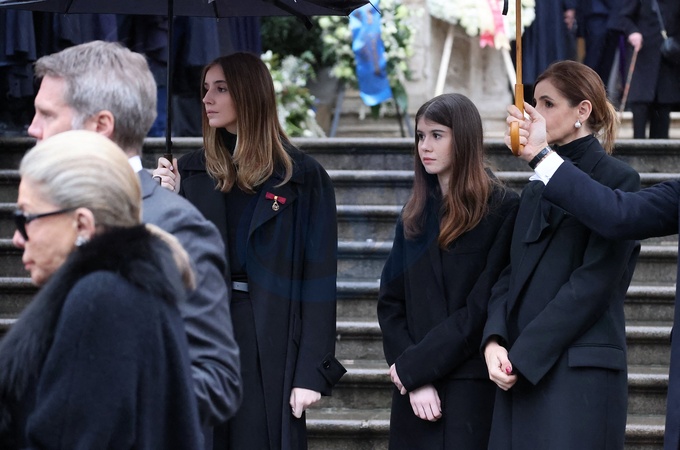 Les princesses Louisa et Vittoria de Savoie avec leur mère, la princesse Clotilde Courau de Savoie - Sorties des funérailles du prince Victor Emmanuel de Savoie en la basilique de Superga près de Turin le 10 février 2024. © Dominique Jacovides/Bestimage Exits from the funeral of Prince Victor Emmanuel of Savoy at the Basilica of Superga near Turin on February 10, 2024.