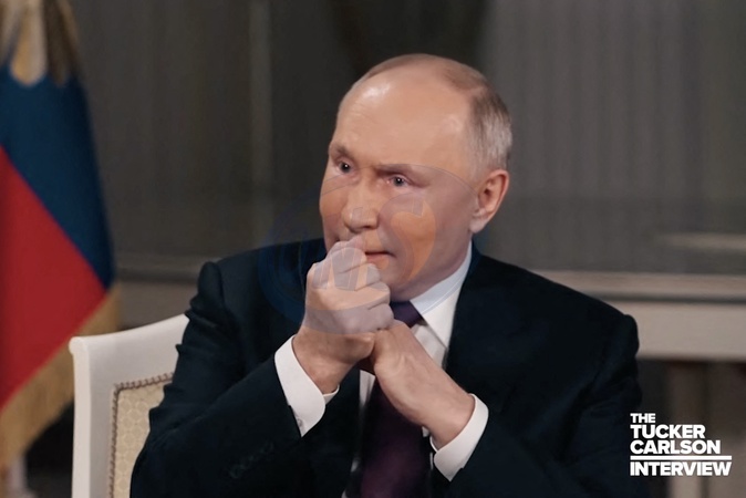 Pictures MUST credit: Tucker Carlson Network US journalist Tucker Carlson interviews Russian president Vladimir Putin at the Kremlin in Moscow on February 6, 2024 with the interview broadcast on February 8. Picture supplied by JLPPA