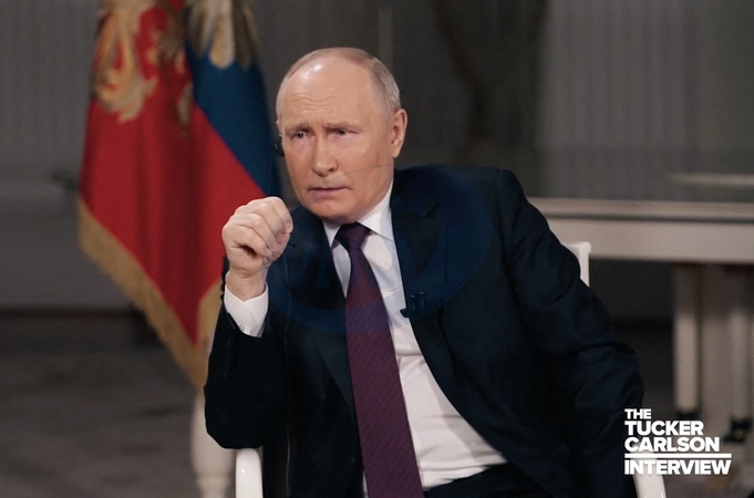 Pictures MUST credit: Tucker Carlson Network US journalist Tucker Carlson interviews Russian president Vladimir Putin at the Kremlin in Moscow on February 6, 2024 with the interview broadcast on February 8. Picture supplied by JLPPA