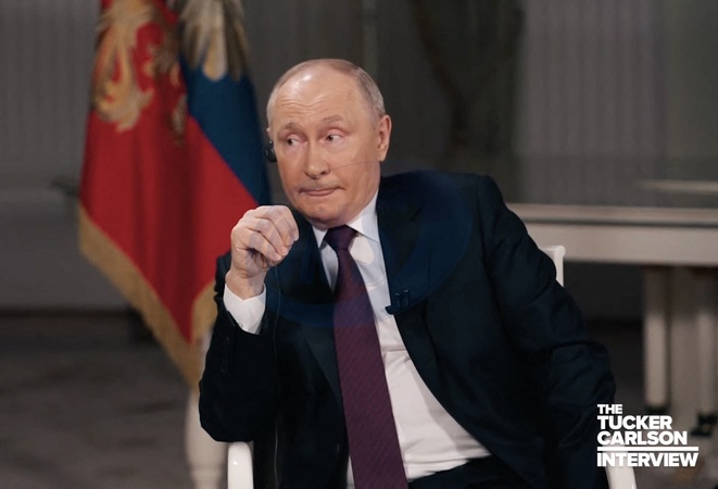 Pictures MUST credit: Tucker Carlson Network US journalist Tucker Carlson interviews Russian president Vladimir Putin at the Kremlin in Moscow on February 6, 2024 with the interview broadcast on February 8. Picture supplied by JLPPA