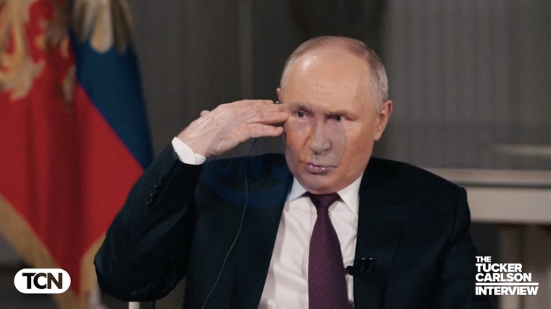 Pictures MUST credit: Tucker Carlson Network US journalist Tucker Carlson interviews Russian president Vladimir Putin at the Kremlin in Moscow on February 6, 2024 with the interview broadcast on February 8. Picture supplied by JLPPA