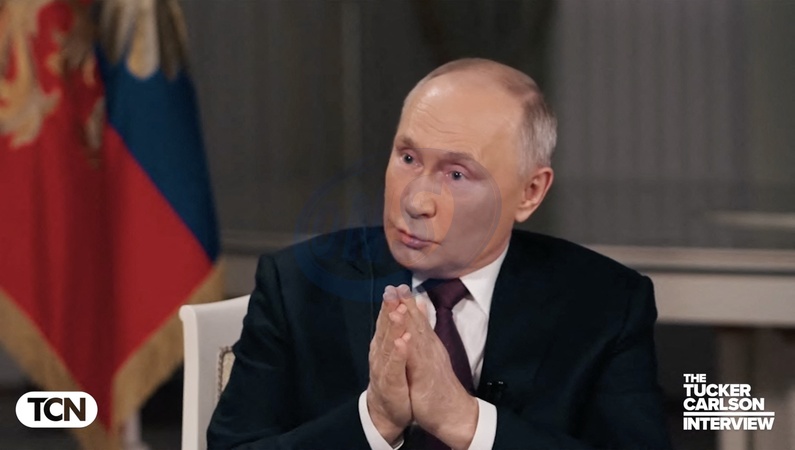Pictures MUST credit: Tucker Carlson Network US journalist Tucker Carlson interviews Russian president Vladimir Putin at the Kremlin in Moscow on February 6, 2024 with the interview broadcast on February 8. Picture supplied by JLPPA