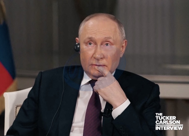 Pictures MUST credit: Tucker Carlson Network US journalist Tucker Carlson interviews Russian president Vladimir Putin at the Kremlin in Moscow on February 6, 2024 with the interview broadcast on February 8. Picture supplied by JLPPA