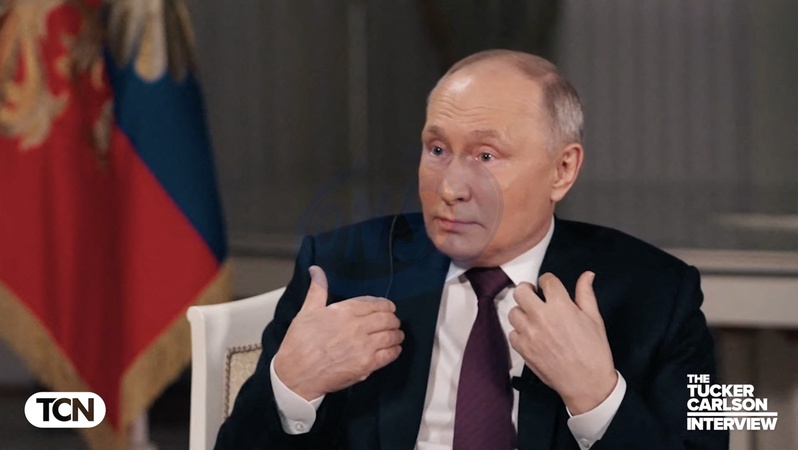 Pictures MUST credit: Tucker Carlson Network US journalist Tucker Carlson interviews Russian president Vladimir Putin at the Kremlin in Moscow on February 6, 2024 with the interview broadcast on February 8. Picture supplied by JLPPA
