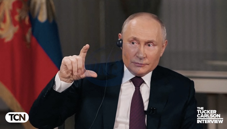 Pictures MUST credit: Tucker Carlson Network US journalist Tucker Carlson interviews Russian president Vladimir Putin at the Kremlin in Moscow on February 6, 2024 with the interview broadcast on February 8. Picture supplied by JLPPA