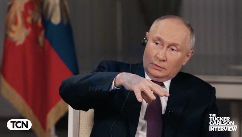 Pictures MUST credit: Tucker Carlson Network US journalist Tucker Carlson interviews Russian president Vladimir Putin at the Kremlin in Moscow on February 6, 2024 with the interview broadcast on February 8. Picture supplied by JLPPA