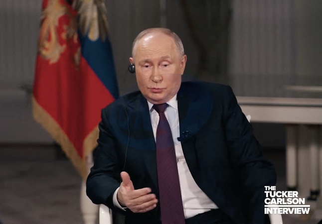 Pictures MUST credit: Tucker Carlson Network US journalist Tucker Carlson interviews Russian president Vladimir Putin at the Kremlin in Moscow on February 6, 2024 with the interview broadcast on February 8. Picture supplied by JLPPA